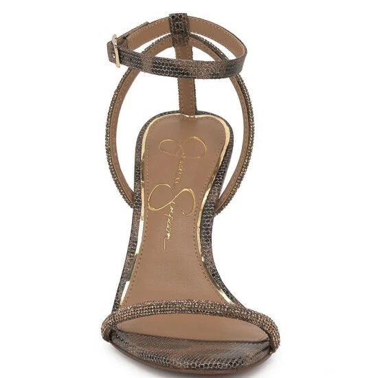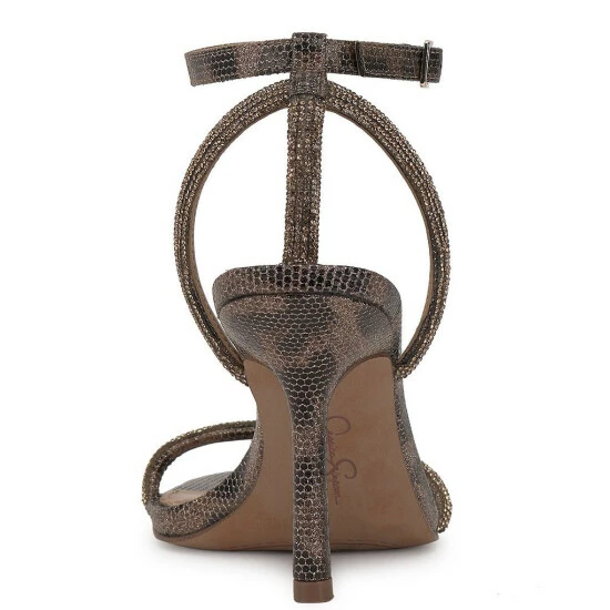 From Jessica Simpson, the Baharia Leopard Rhinestone Dress Sandals feature: