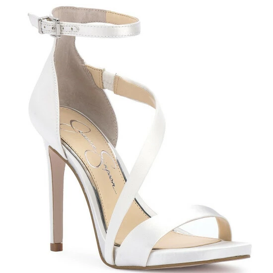 From the Jessica Simpson Bridal Collection, the Rayli2 Satin Stiletto Dress Sandals feature:
