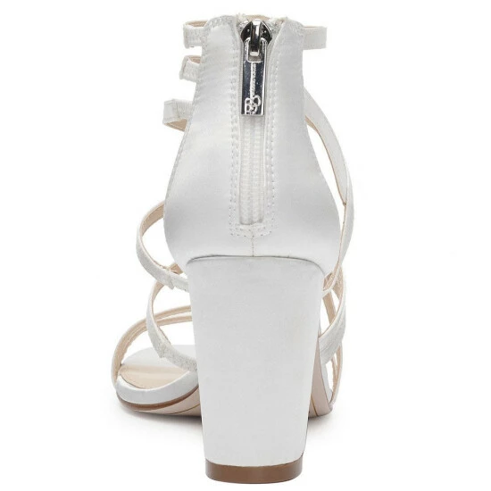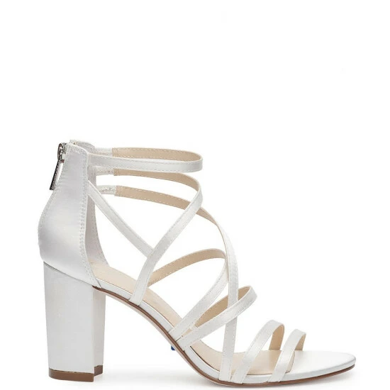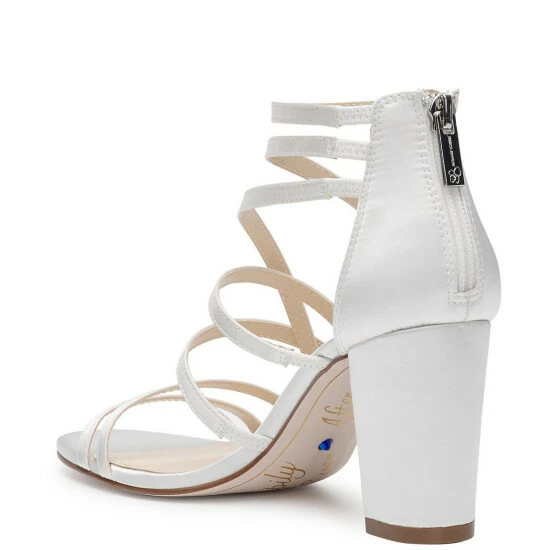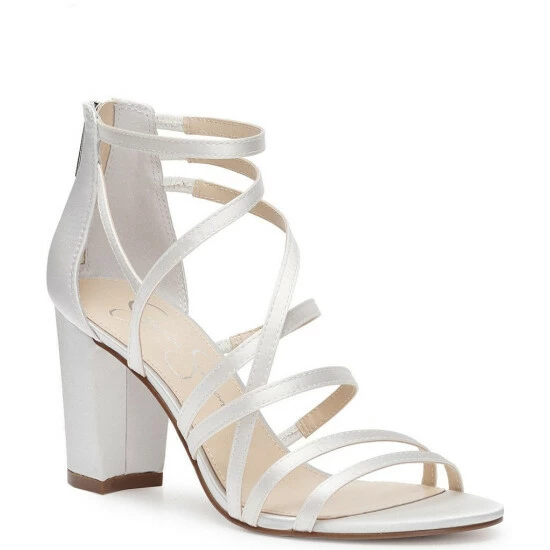 From the Jessica Simpson Bridal Collection, the Stassey Satin Strappy Dress Sandals feature: