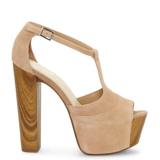 From Jessica Simpson, the Dany Suede Platform Sandals feature: