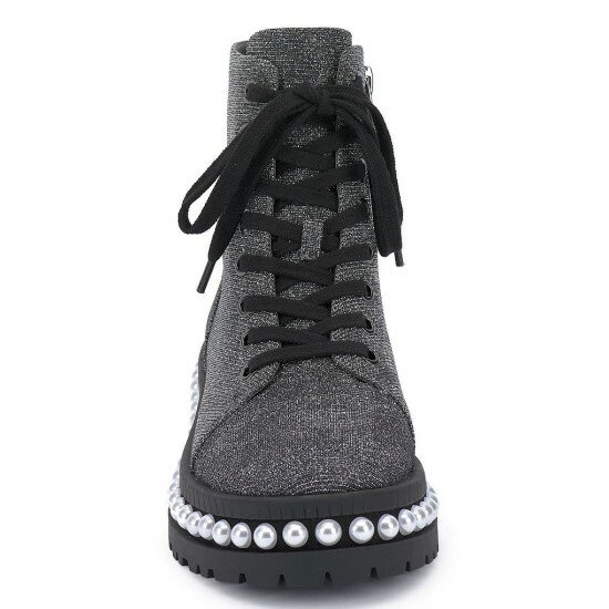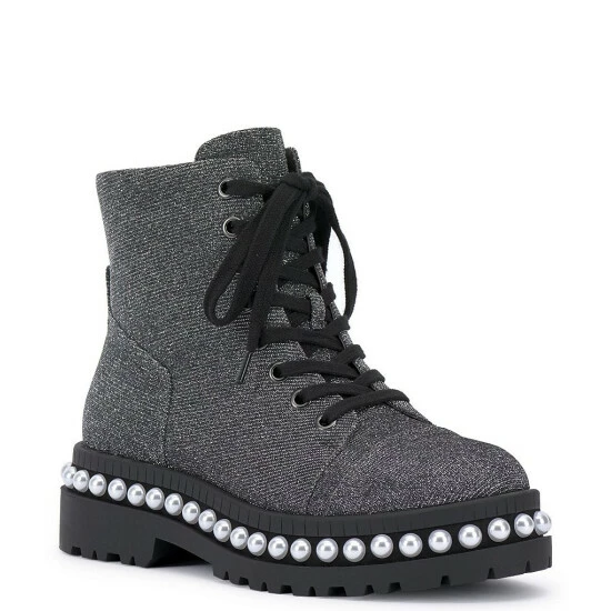 From Jessica Simpson, the Eilir Textured Pearl Studded Platform Moto Booties feature: