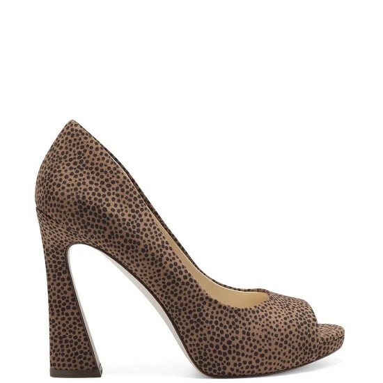 From Jessica Simpson, the Felliey Peep Toe Flared Heel Pumps feature: