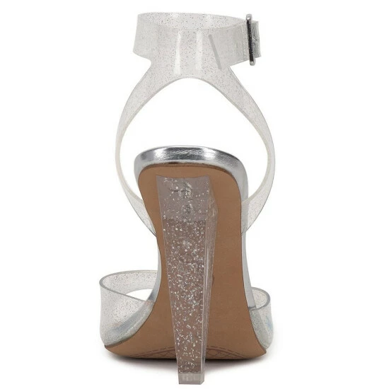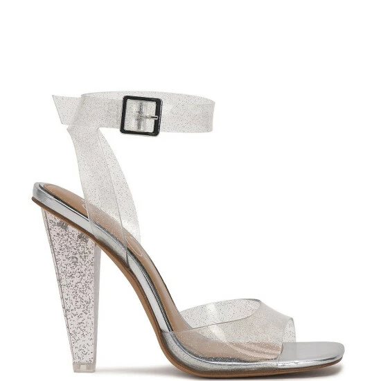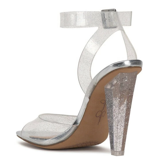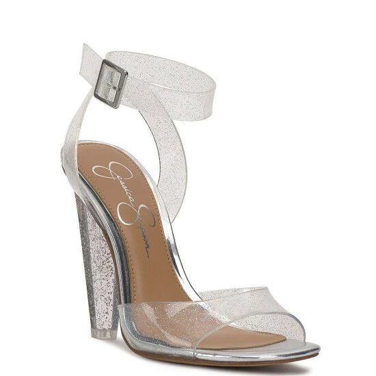 From Jessica Simpson, the Franie Clear Glitter Ankle Strap Dress Sandals feature: