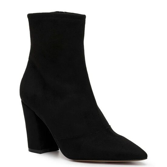 From Jessica Simpson, the Hendria Faux Suede Block Heel Booties feature: