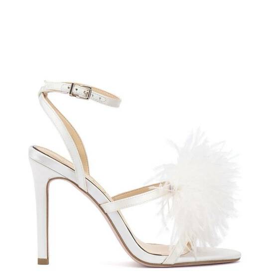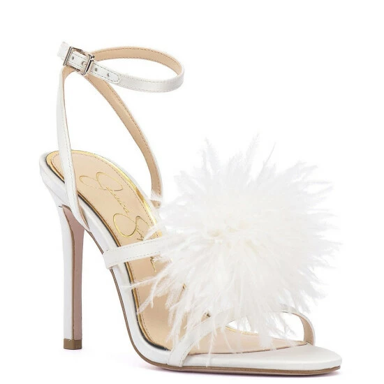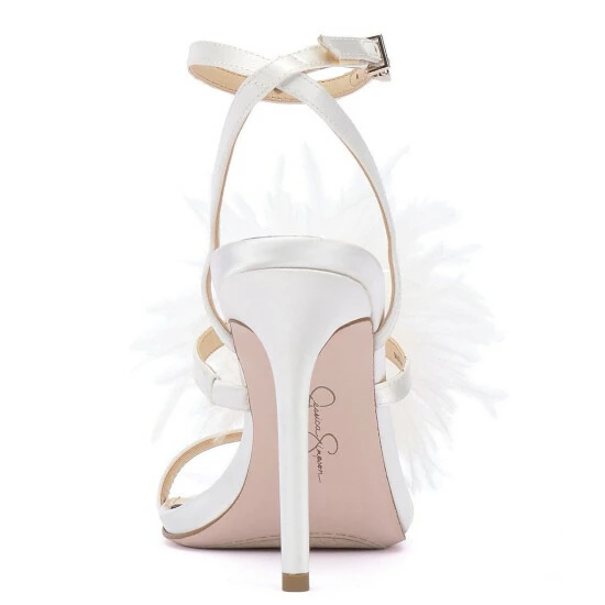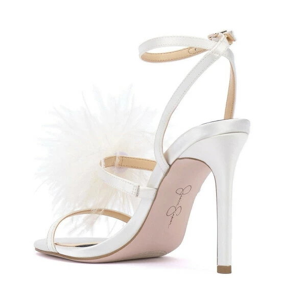 From Jessica Simpson, the Jenevya Satin Feather Dress Sandals feature: