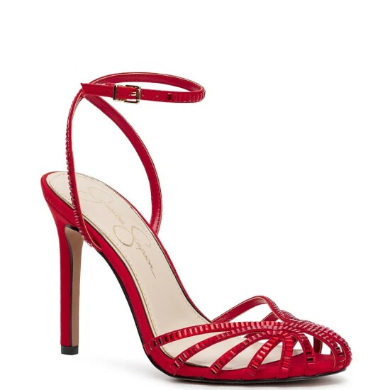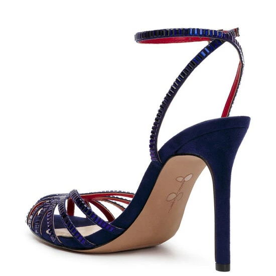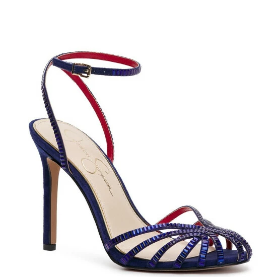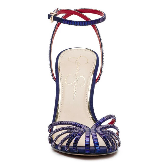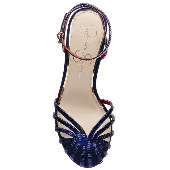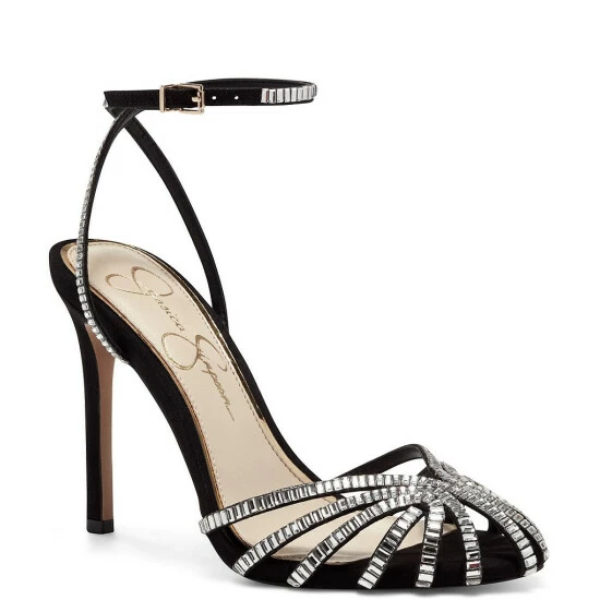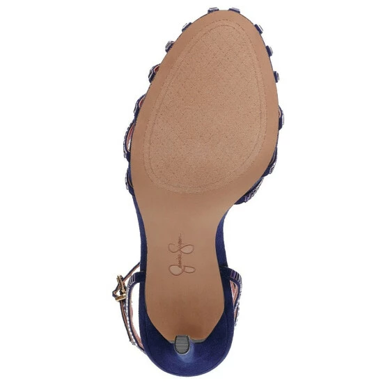 From Jessica Simpson, the Jileta Jewel Embellished Ankle Strap Dress Sandals feature: