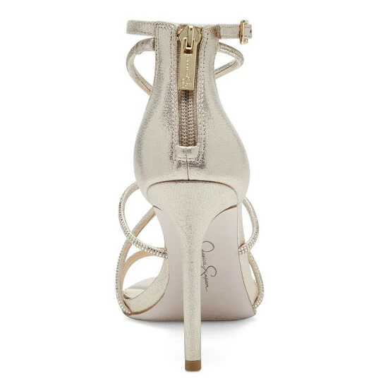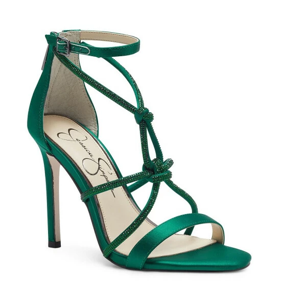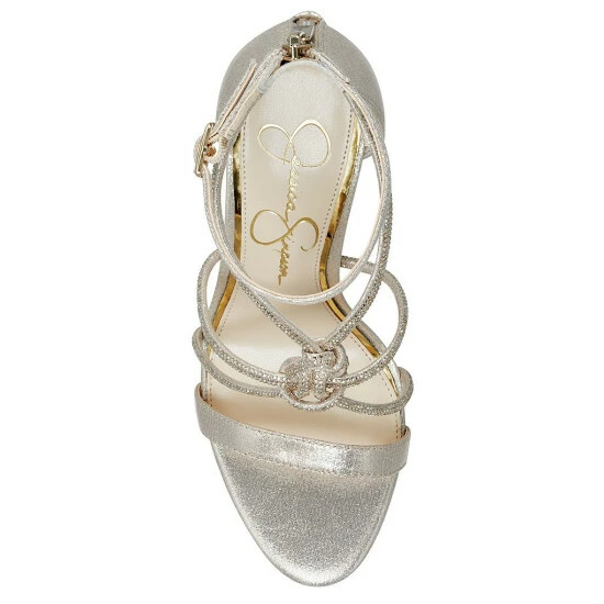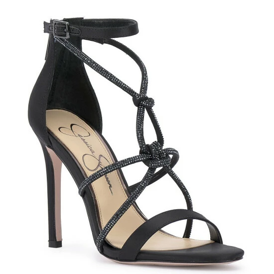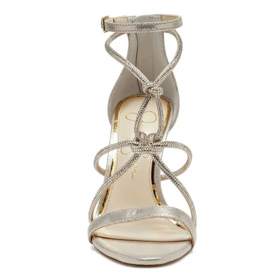 From Jessica Simpson, the Josy Rhinestone Knot Strappy Dress Sandals feature: