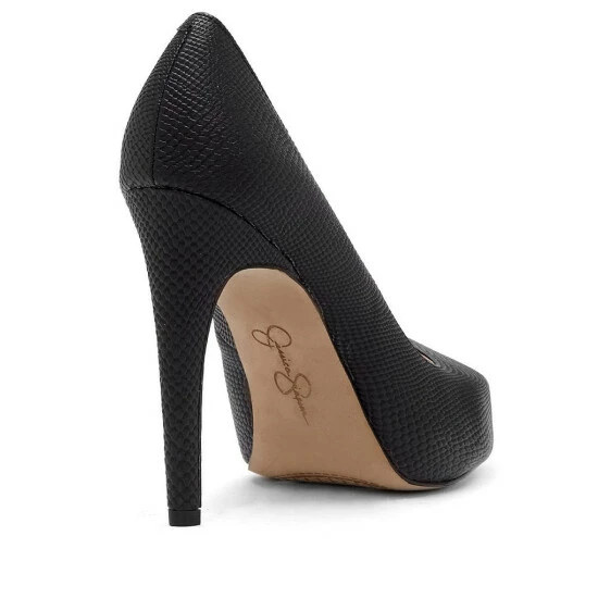 From Jessica Simpson, the Parisah Snake Embossed Platform Pumps feature: