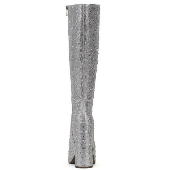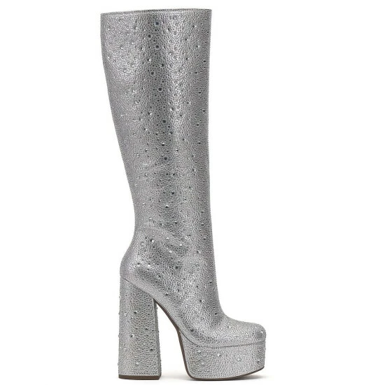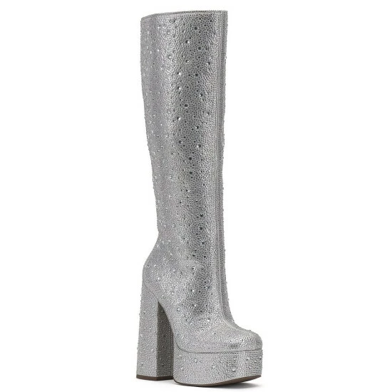 From Jessica Simpson, the Sinalla Rhinestone Platform Tall Boots feature: