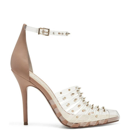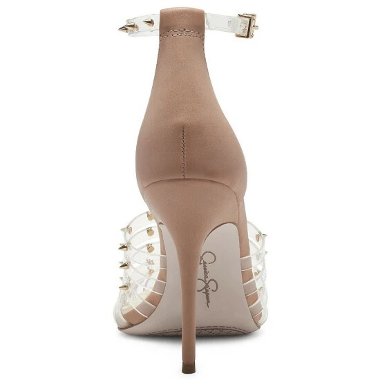 From Jessica Simpson, the Westah Vinyl Studded Ankle Strap Pumps feature:
