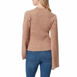 Outlet 🌟 Jessica Simpson Tacoma Mock Neck Cut Out Long Bell Sleeve Spacedye Sweater Mocha Mousse 🤩