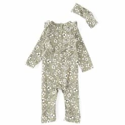Coupon ✔️ Jessica Simpson Baby 👧 Girls Newborn-9 Months Long-Sleeve Leopard-Printed Coverall Olive ❤️
