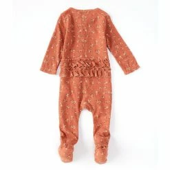 Best Sale 🎁 Jessica Simpson Baby 👧 Girls Newborn-9 Months Long-Sleeve Printed Asymmetrical-Zip Waffle-Knit Footed Coverall Plum ⭐