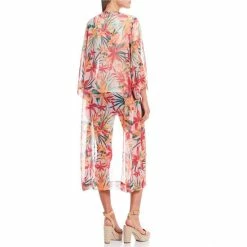 Best deal 💯 Jessica Simpson Alaina Tropical Floral Ruffle Sleeve Tie Front Top Floral Canopy Pink 🛒