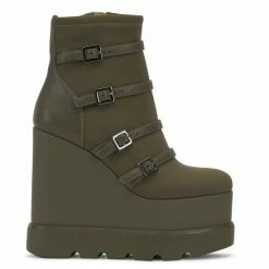 Top 10 👏 Jessica Simpson Chaela Combat Buckle Straps Platform Wedge Booties Uniform Green 🛒