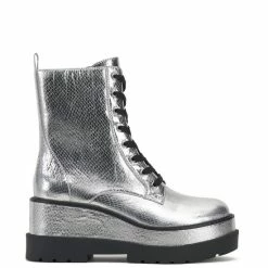 Best Sale 🧨 Jessica Simpson Imelda Embossed Metallic Platform Combat Booties Silver 🛒