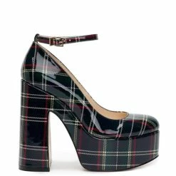 Promo ✔️ Jessica Simpson Macee Plaid Patent Ankle Strap Platform Pumps Green Collegiate Plaid ❤️