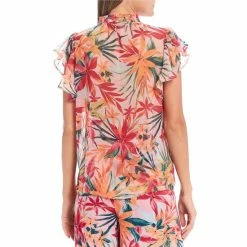Best deal 💯 Jessica Simpson Alaina Tropical Floral Ruffle Sleeve Tie Front Top Floral Canopy Pink 🛒